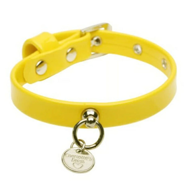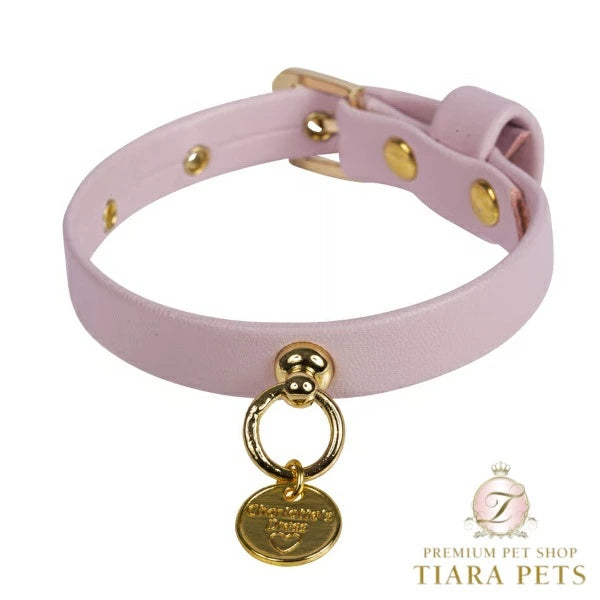 シンプルなエコレザーの首輪。金具はゴールド仕様。