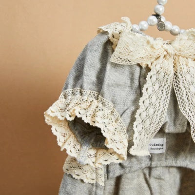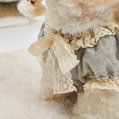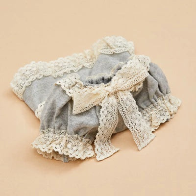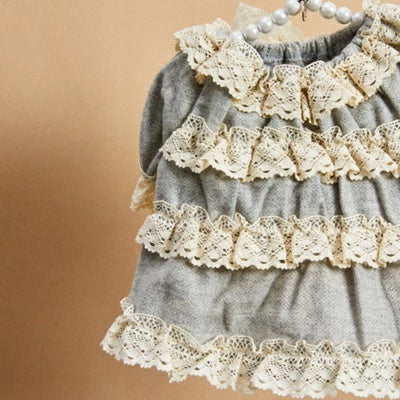 繊細なレースフリルがロマンティックなシルエットを演出し、やさしいゴムギャザーで快適かつ着脱も簡単。背面の可愛らしいリボンがアクセントとなり、愛犬のワードローブに洗練されたタイムレスな優雅さをプラスします。