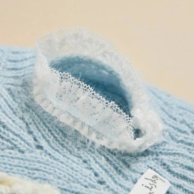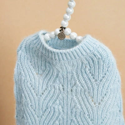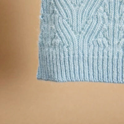 リラックス感のある編み地と、アームホールに施された繊細なレーストリムが、上品でフェミニンな印象を引き立てます。