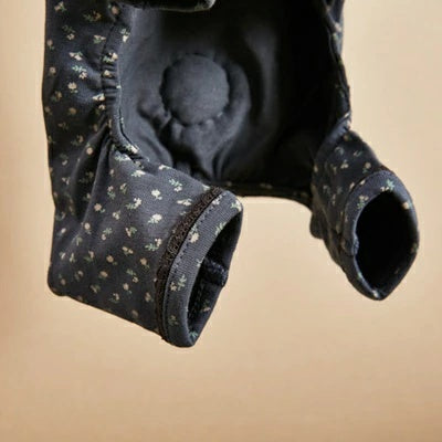 やわらかなグレーベースに、繊細なヴィンテージ調フローラルプリントを重ね、どこか懐かしくも洗練された冬のムードを演出する一着です。