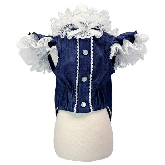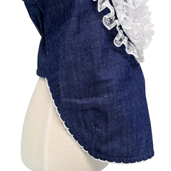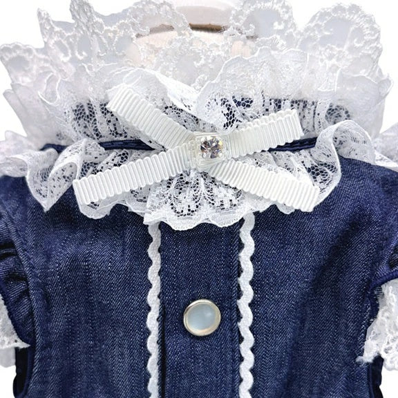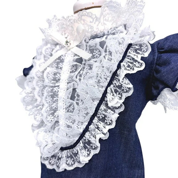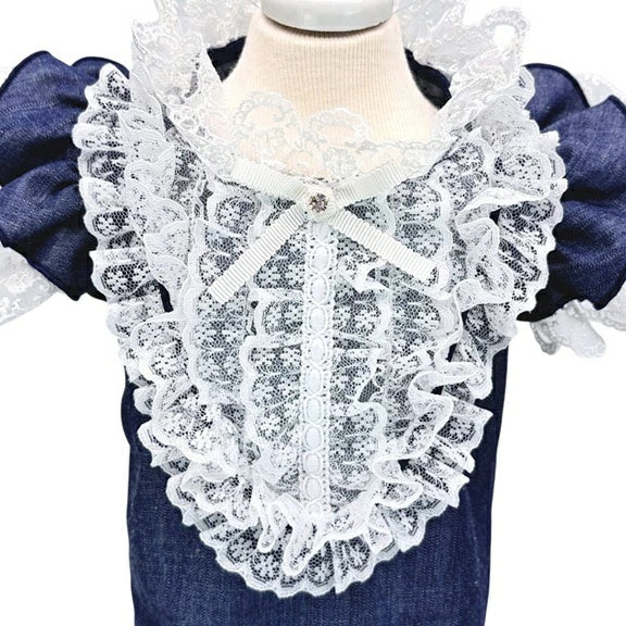 深みのあるコットンデニムに、立体的なホワイトレースを重ねて。