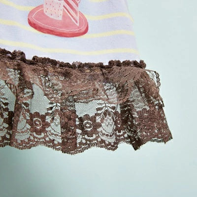 クラシックなポロシャツから着想を得たスポーティーなストライプベースに、中央には愛らしいピンクのストロベリーケーキグラフィック。