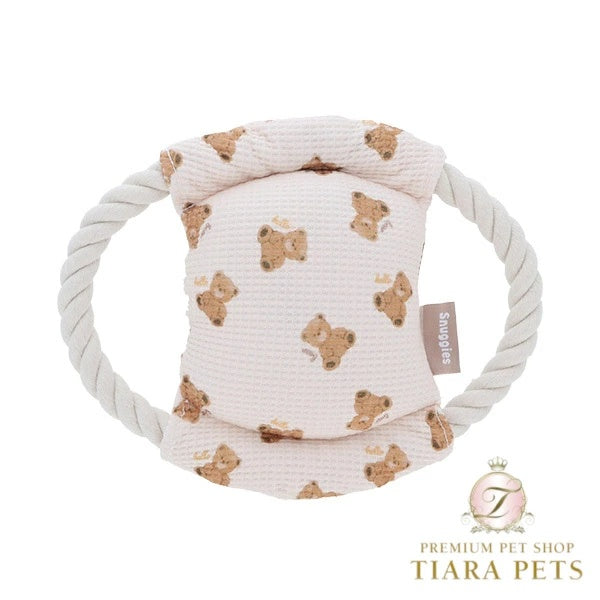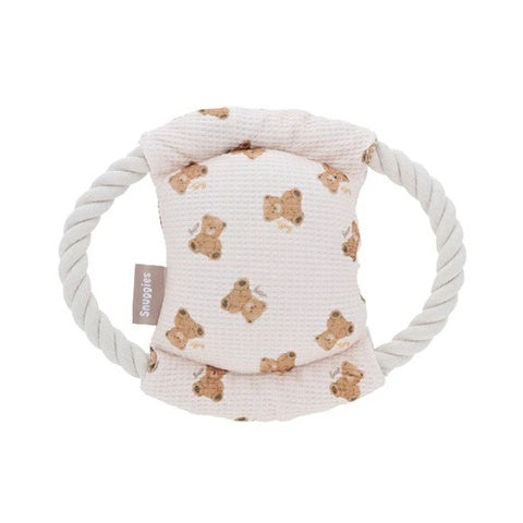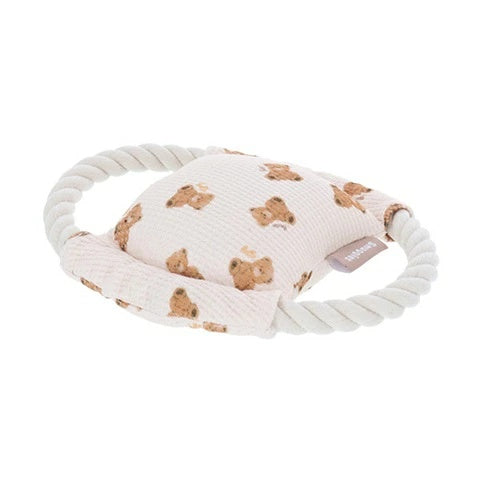 なき笛の入ったクマ柄ロープラウンドトイ。