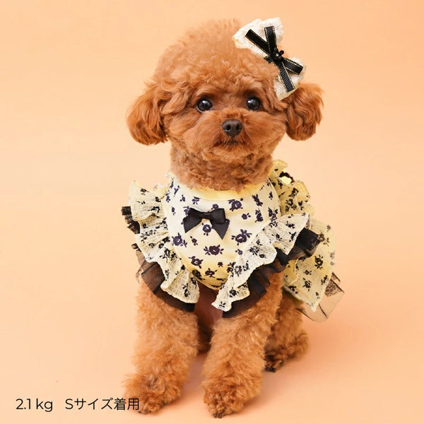 きゃんナナ CanNana ★ご予約★ レース&チュールキャミワンピース(リボンブローチ付き) 1178【小型犬 犬服 ドッグウェア ワンピース ドレス スカート】