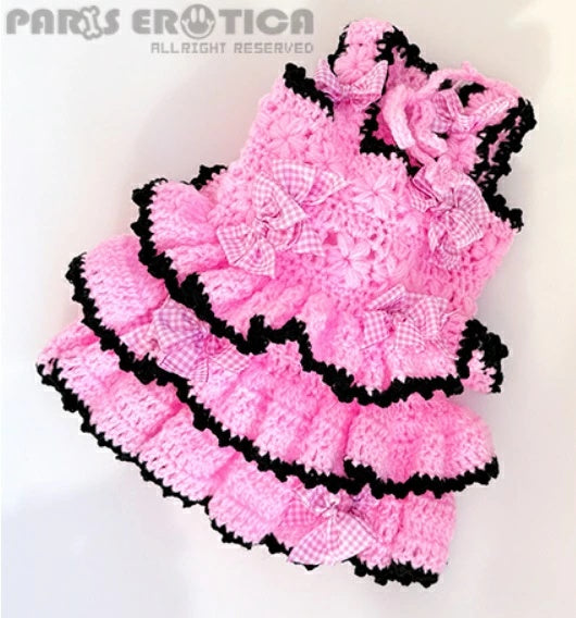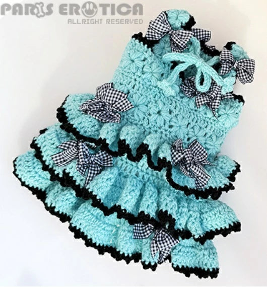 パリエロ PARIERO ニット花編みリボンドレス for M-XL [オーダーメイド]【小型犬 犬服 ワンピース ドレス スカート セレブ】
